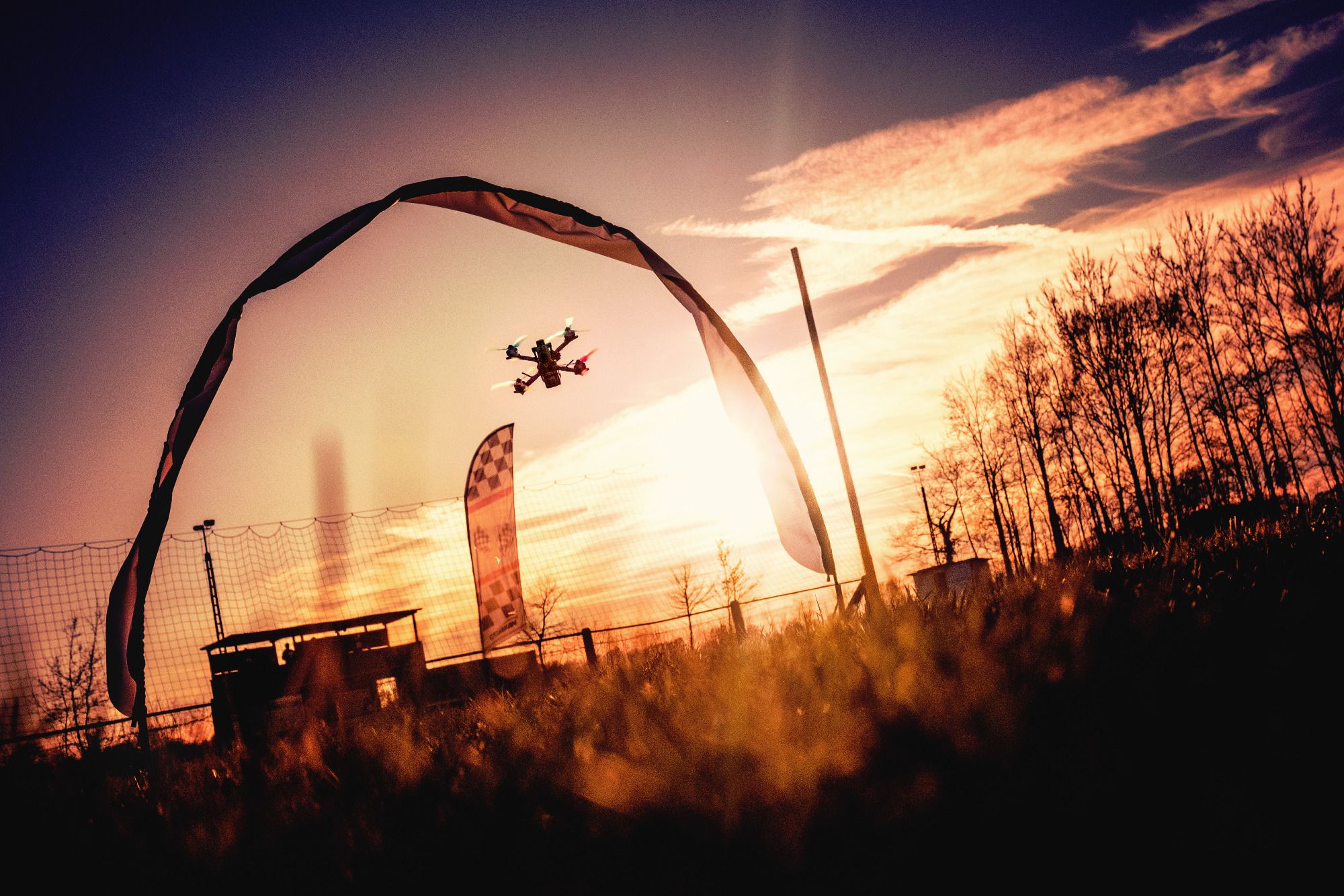Für spannende Drohnenrennen wurde der Track mit reichlich Equipment wie Fahnen, Tore, Leiter und Dropgate bestückt.